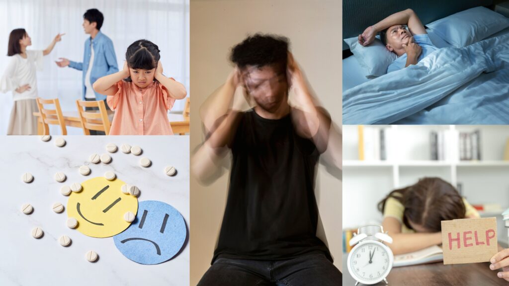 - الأعراض: أرق، أفكار متكررة، صعوبة التركيز، زيادة التعرق، أحيانًا نوبات هلع.